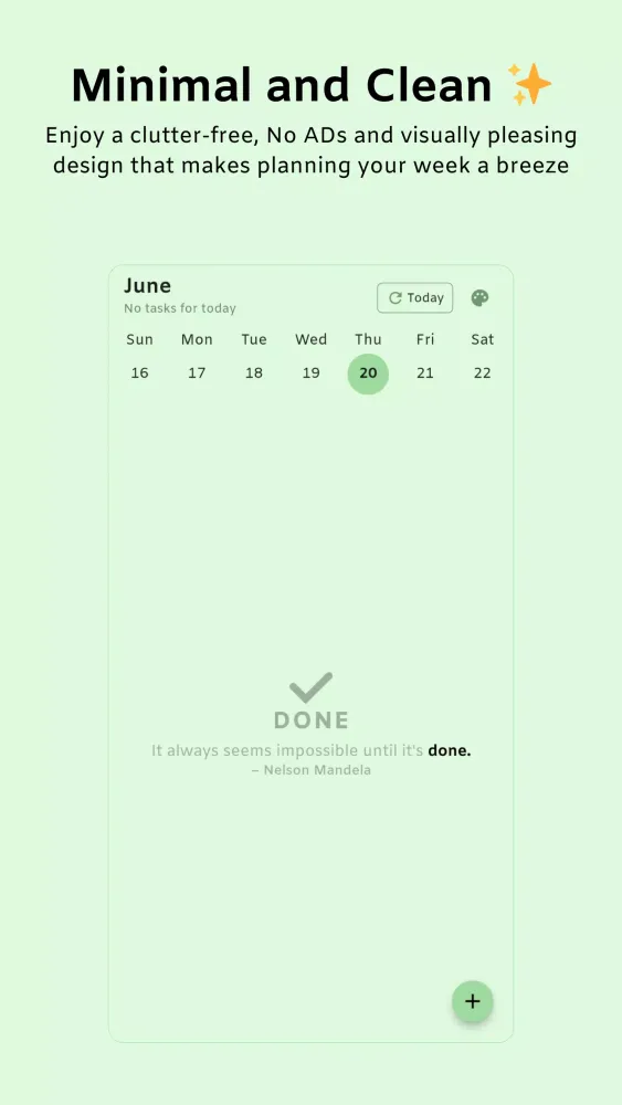 Done is ideal for anyone who appreciates simplicity and efficiency in their daily planning. Whether you're a busy professional or someone looking to streamline their routine, Done keeps your tasks under control and your week on track.