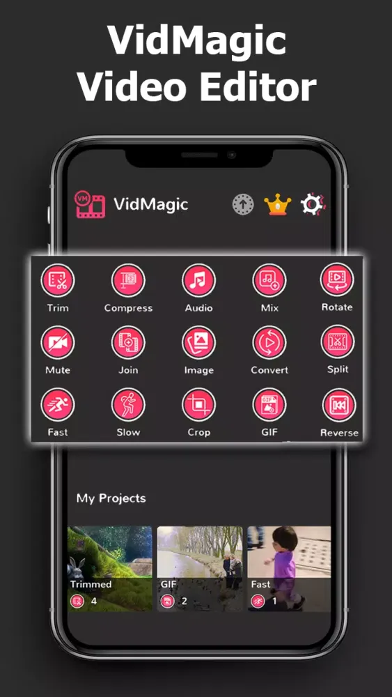 At the heart of VidMagic lies its versatility. It's not just an app; it’s an All-In-One Professional video editing tool that allows users to trim, merge, resize, and convert videos within minutes. Whether you want to shorten a clip, combine multiple videos, or transform your footage into something entirely new, VidMagic provides the flexibility and precision needed to achieve your creative vision. The app also supports exporting videos directly to popular social media platforms like YouTube, Facebook, Twitter, Instagram, and WhatsApp, ensuring your work reaches the right audience effortlessly.