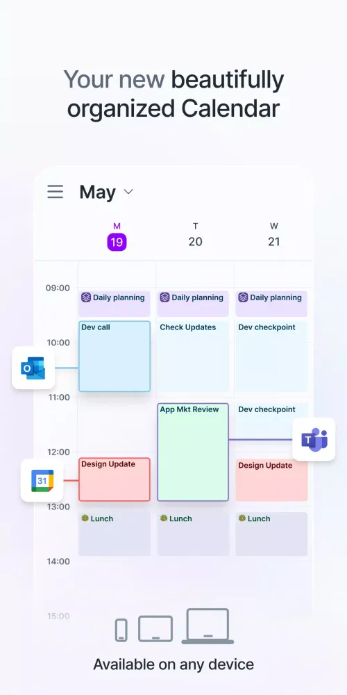 Access your tasks and calendar on Android, iOS, and web platforms. Enjoy real-time synchronization to keep you updated wherever you are.