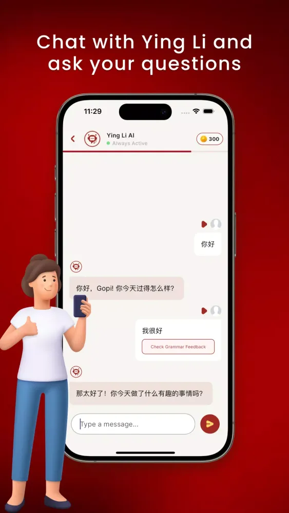 Engage in dynamic conversations with our AI chatbot to practice Chinese in real-life scenarios. Receive instant corrections, vocabulary suggestions, and helpful tips. This feature helps build your confidence in speaking and expands your vocabulary effortlessly.