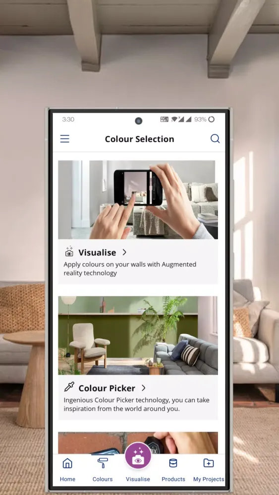 The Dulux Trade Visualizer lets you try out virtually any color in real-time. The integrated color sensor allows you to scan any object and find its exact matching color, ensuring consistency and precision. You can apply these realistic Dulux Trade paint colors to walls effortlessly. Additionally, the app helps you find colors that complement your existing furniture or soft furnishings, making it easier to create harmonious color schemes.