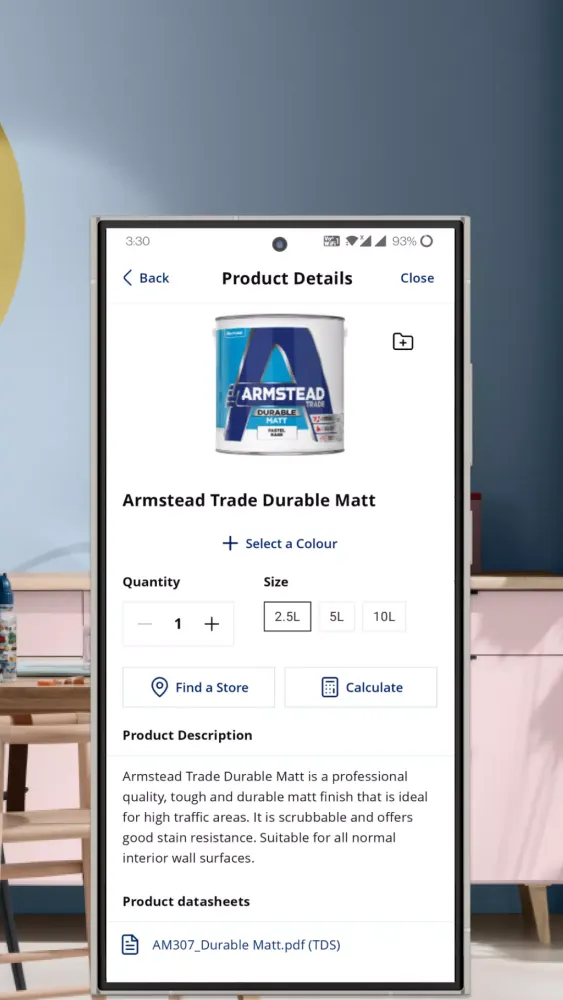 With the app, you can enter a town or postcode to locate your nearest store, complete with contact details and a map. The intelligent Paint Calculator estimates the amount of paint needed based on the area you plan to paint, saving you time and effort.
