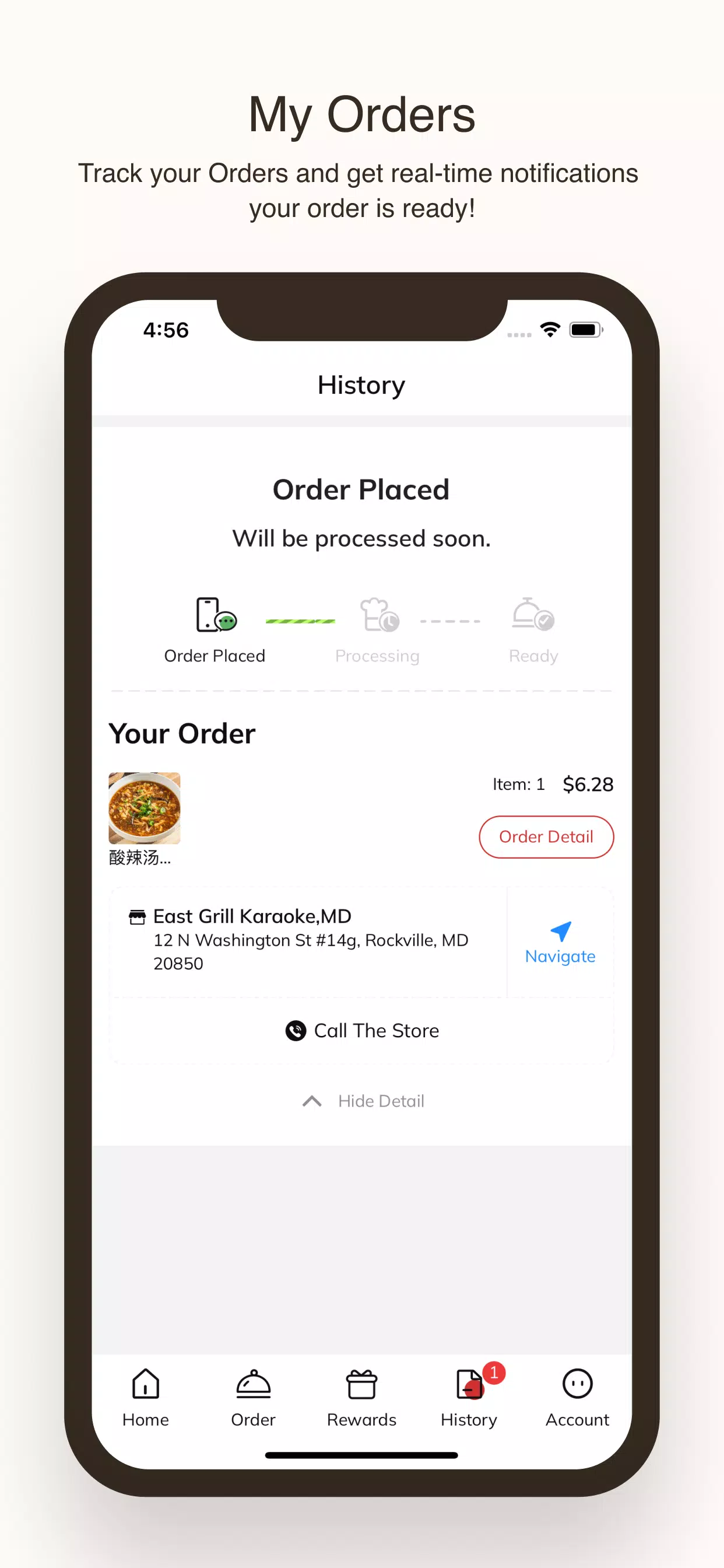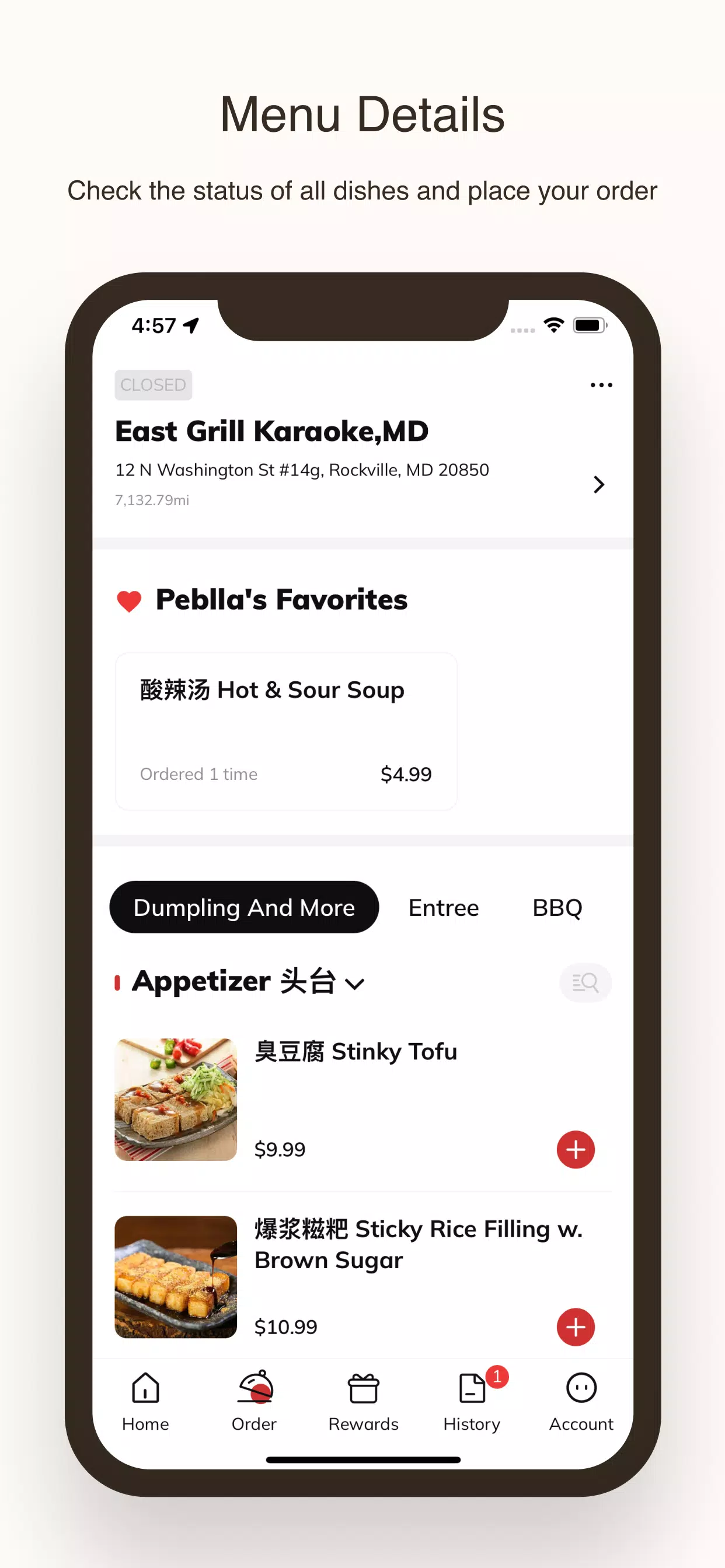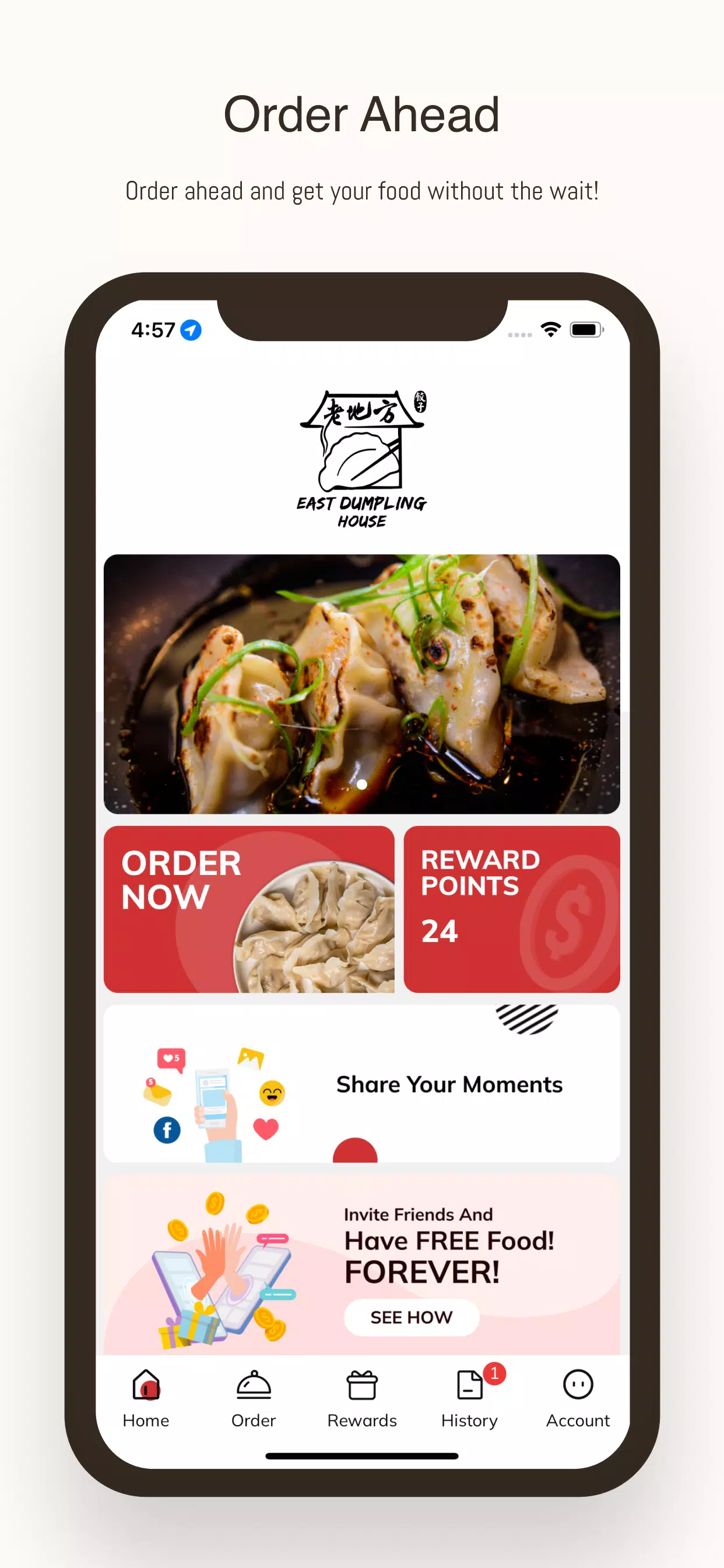 For regular customers, the "My Account" section is a valuable tool that allows you to check your Reward Balance, view your Order History, and manage your preferences. It's a personalized space that makes your experience even more seamless and tailored to your needs. Whether you're a first-time visitor or a loyal customer, East Dumpling House is here to provide you with exceptional service and delicious meals. Start exploring today and discover why this app is becoming a favorite among food lovers.