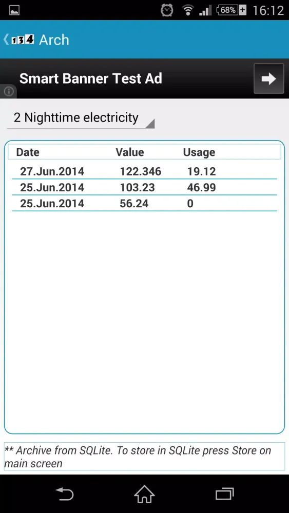 - Detailed Archive View: Store your readings using the "store" button to maintain a comprehensive record of your usage history.