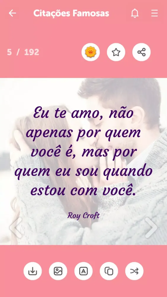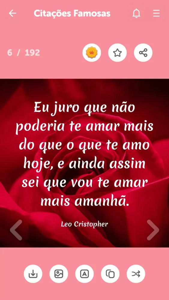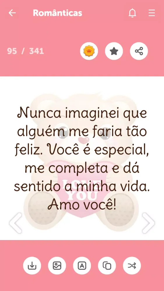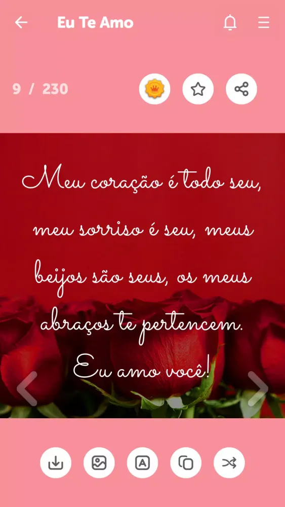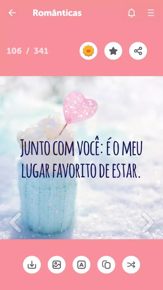 With "Frases e Mensagens de Amor," you can effortlessly communicate your feelings via popular messaging platforms like WhatsApp, Facebook Messenger, SMS, and more. The app is equipped with an intuitive interface that makes sharing these messages as simple as a single tap. It’s not just about sending words—it’s about creating moments of connection and joy. Imagine waking up each morning to a loving message from your significant other, or surprising your best friend with a thoughtful note on their birthday. This app transforms those fleeting thoughts into lasting memories.