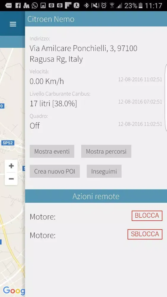 For enhanced security, the app features an "inseguimi" function, which activates when there is an attempt at vehicle theft. This feature allows users to continuously track the vehicle's movements, ensuring swift action can be taken to recover the asset. Furthermore, users will receive push notifications for alarms or other important events, such as unauthorized intrusions, speeding incidents, or crossing predefined boundaries. These notifications ensure that users are always aware of any potential issues related to their fleet.