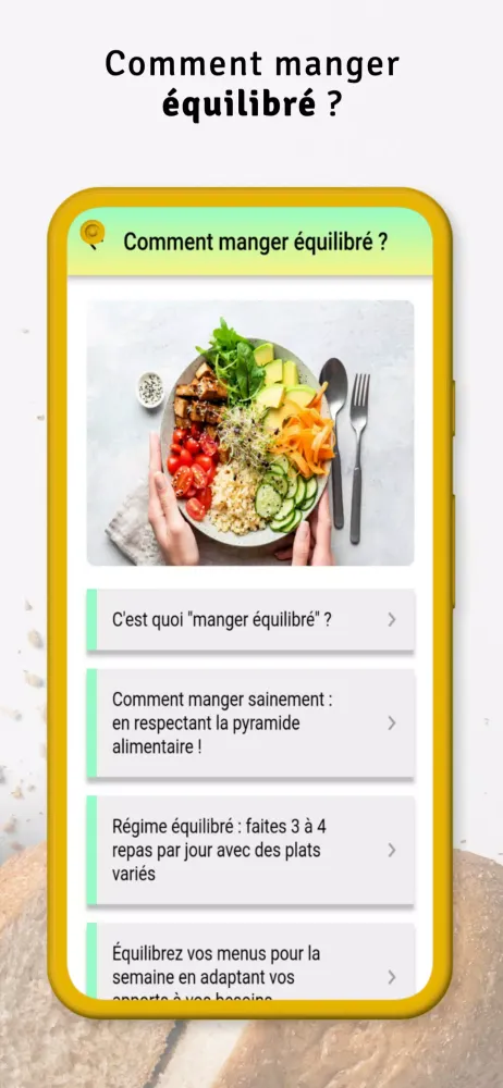 At its core, a healthy and balanced diet emphasizes consuming a variety of nutrient-rich foods while minimizing highly processed options. "Alimentation saine équilibrée" makes this easier by breaking down complex nutritional concepts into actionable insights. From understanding the properties of different foods to planning a week's worth of balanced meals, the app ensures that users can make informed choices about their dietary habits. Whether you're looking for inspiration for breakfast, lunch, or dinner, the app provides a wealth of recipe ideas that are both tasty and nutritious.