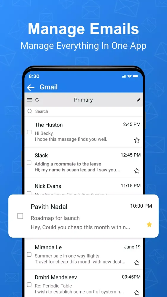 In today's fast-paced world, managing multiple email accounts can be a daunting task. However, with MailBox - All Accounts, you no longer have to juggle between various webmail platforms. This innovative application is designed to simplify your email management by consolidating all your accounts—whether you use Gmail, Hotmail, Outlook, or any other service—into a single, user-friendly interface. By doing so, it allows you to effortlessly handle your digital communications from one centralized location.
