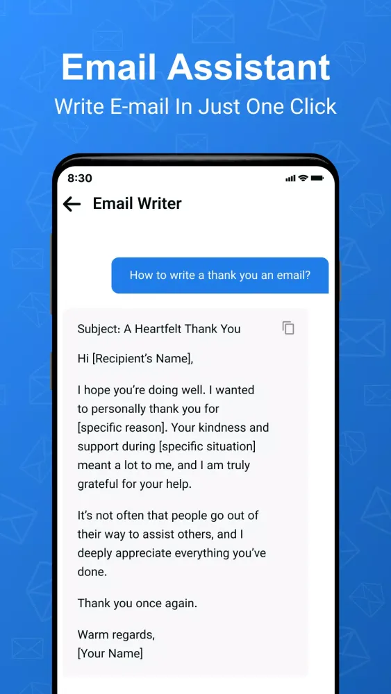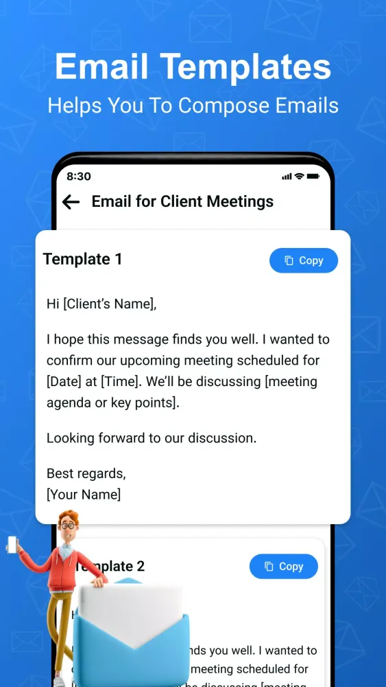 Another notable aspect of the app is its collection of default email templates. These templates allow users to swiftly compose professional-looking emails without the hassle of starting from scratch. Simply choose a template that suits your needs, fill in the necessary details, and hit send. This feature saves time and effort, particularly for those who frequently send similar types of messages.