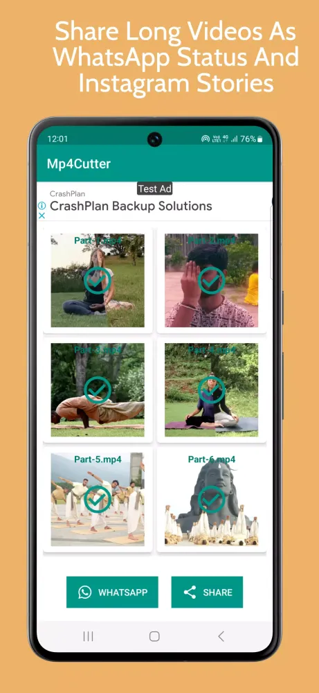 Segment Your Videos: Easily trim long videos into manageable parts, such as 60-second clips or any custom duration. This feature is perfect for creating engaging content for WhatsApp statuses, Instagram stories, or YouTube Shorts.