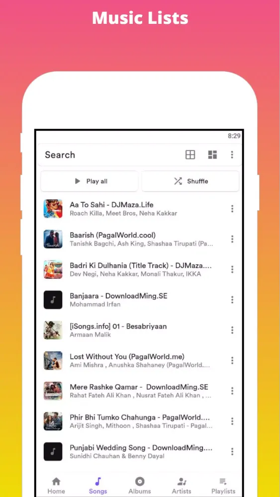 - Browsing Options: Explore music by songs, albums, artists, playlists, and genres.