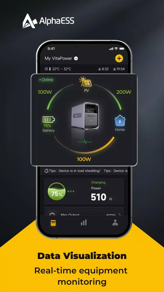 The Alpha Lite App is designed to be your comprehensive solution for monitoring and managing your Vita Power storage devices and smart plugs in real time. With this app, you can effortlessly connect your phone with VitaPower and VitaMate, ensuring seamless communication between all your intelligent devices, no matter where you are.