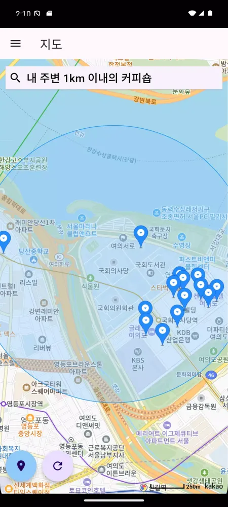 Upon performing a search, you'll receive a comprehensive list of results, organized by proximity. Each entry in the list comes with detailed information, including the name, address, and distance from your location. Additionally, the app visually represents these locations on a map using markers and circles, making it easy to understand the spatial relationships between different points of interest. This visual representation ensures you have a clear overview of where each place is located relative to your position.