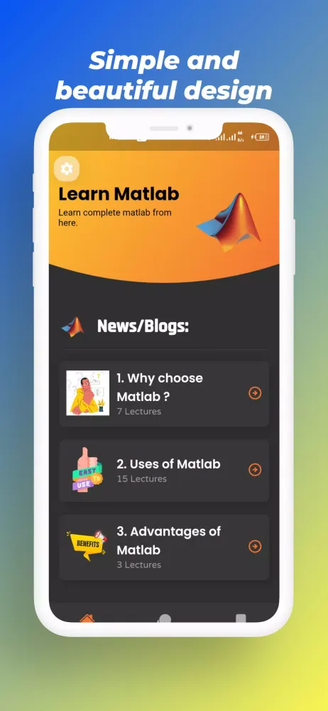 This app is meticulously crafted for students at all levels, from beginners to advanced learners. It includes comprehensive lectures covering everything from the basics to advanced topics. Additionally, the app features a built-in code compiler to assist you in your coding journey. Each tutorial within the app is designed to guide you through your studies, ensuring you emerge as a skilled MATLAB programmer.