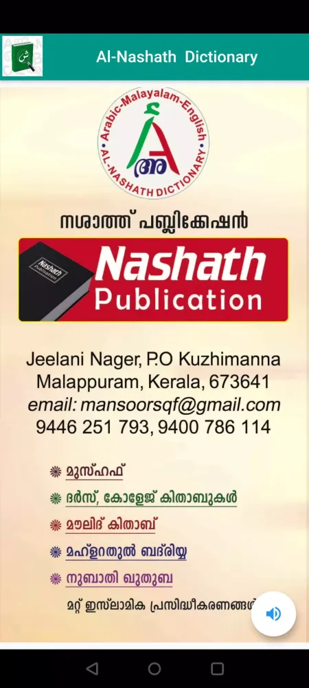 Al Nashath Dictionary is a comprehensive and user-friendly mobile application that serves as a bridge between Arabic, Malayalam, and English. Designed with the needs of students, teachers, and Islamic scholars in mind, this free app offers millions of entries for your reference.
