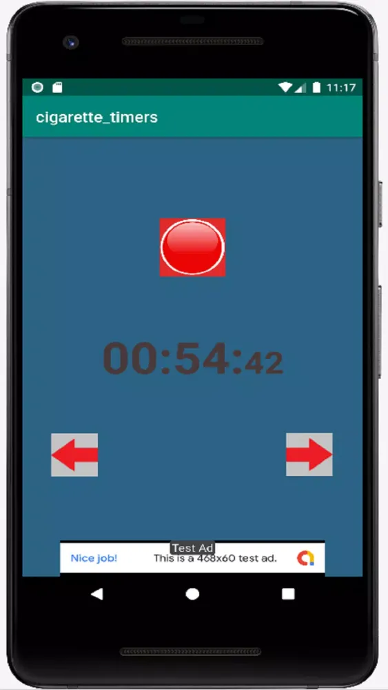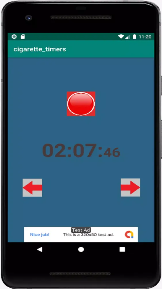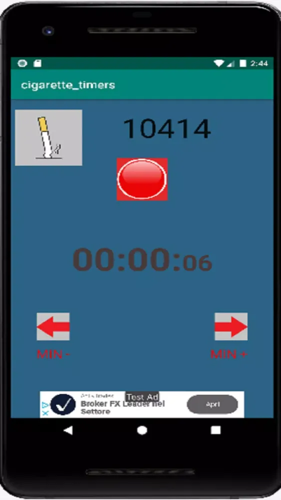 When you press the red button, the timer starts counting the duration since your last cigarette. This timer will continue running even if you exit the app or restart your device. For instance, if you press the red button and reopen the app 40 minutes later, the timer will reflect that 40 minutes have passed since your last cigarette. You can easily adjust the time that has passed using the up and down arrows provided within the interface.
