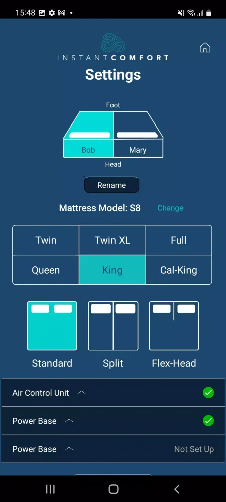 To use the Instant Comfort® App effectively, ensure that your setup includes an Instant Comfort® air mattress equipped with a Bluetooth® enabled Gen III control unit and at least one Reverie® Bluetooth® enabled adjustable bed frame. Once paired, these devices work harmoniously to deliver seamless operation and unmatched flexibility in managing your sleep preferences.
