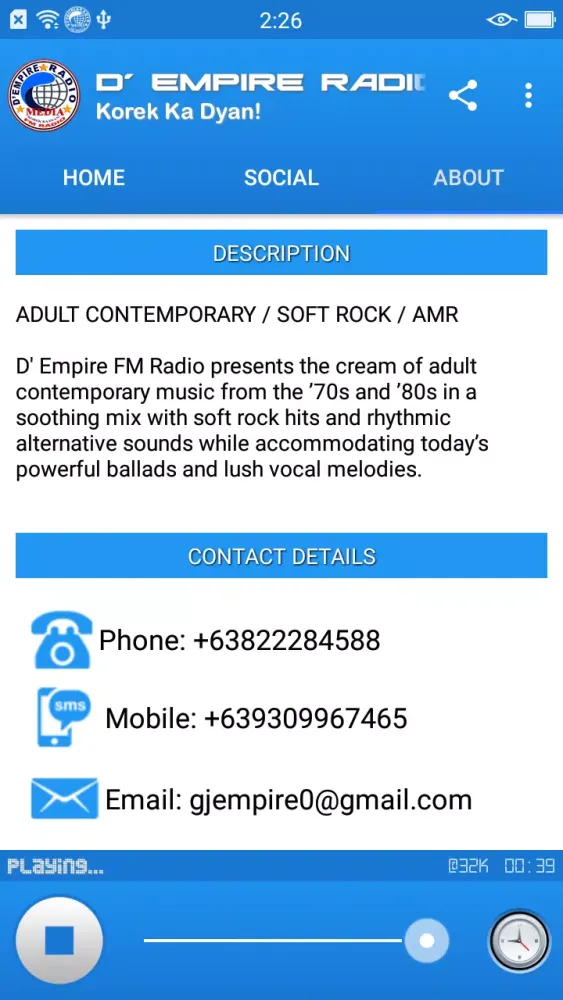 This application is the exclusive, official app for D' Empire Radio under an agreement between D' Empire Radio and AMFM Philippines. For more information, visit AMFM Philippines.