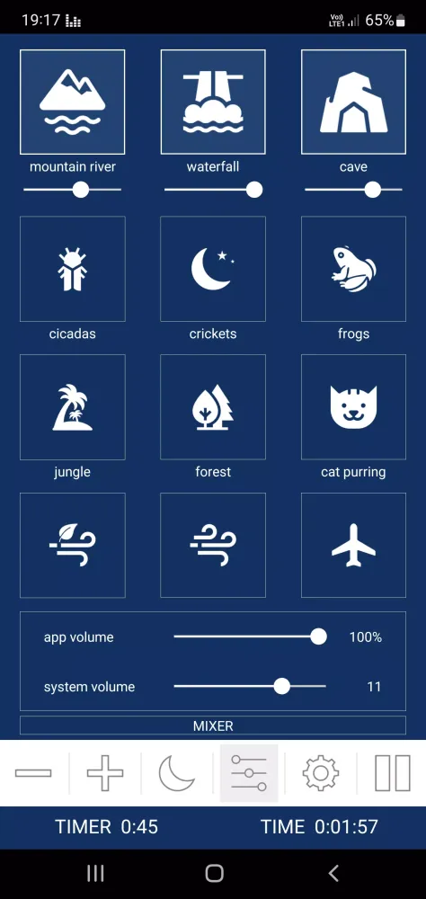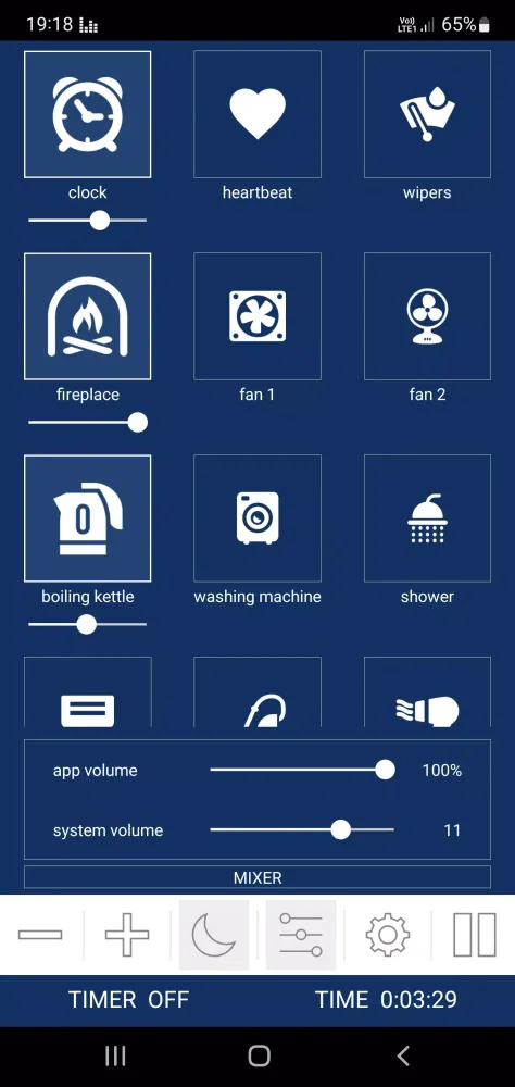 The app features over 50 different white noise sounds, all available for free. Users can enjoy infinite playback, set a timer with a soft fade-out option, and customize their experience using the mixer feature. Each sound’s volume can be adjusted independently, allowing for personalized combinations. The app also maintains a separate volume setting from the system volume, ensuring that users can control their audio experience without affecting other apps. Background audio support is included, and the app works offline, making it accessible anytime, anywhere.