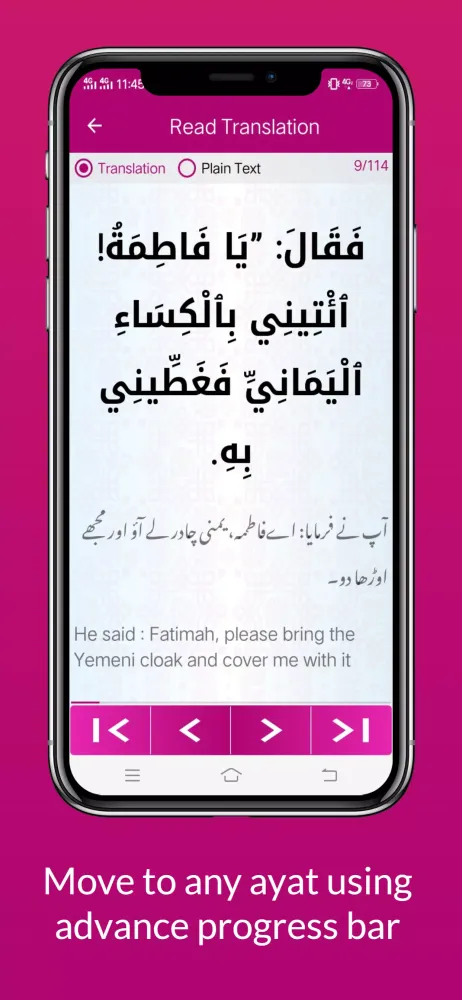 - Progress Bar: Easily move to favorite verses using the progress bar.