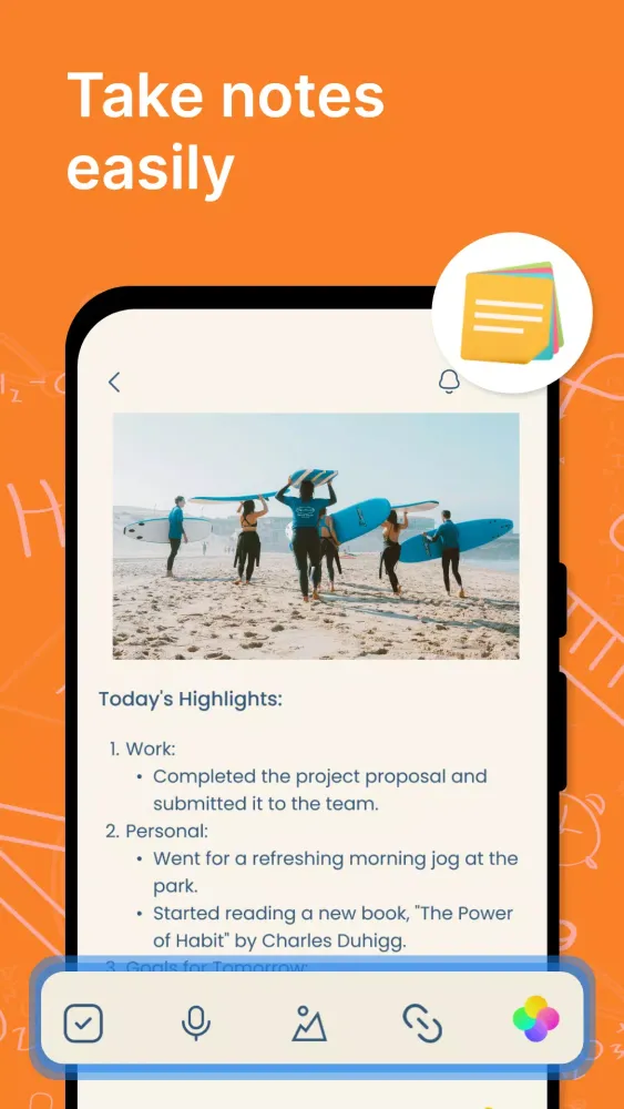 - Notes: Keep track of your daily tasks and create memorable notes.