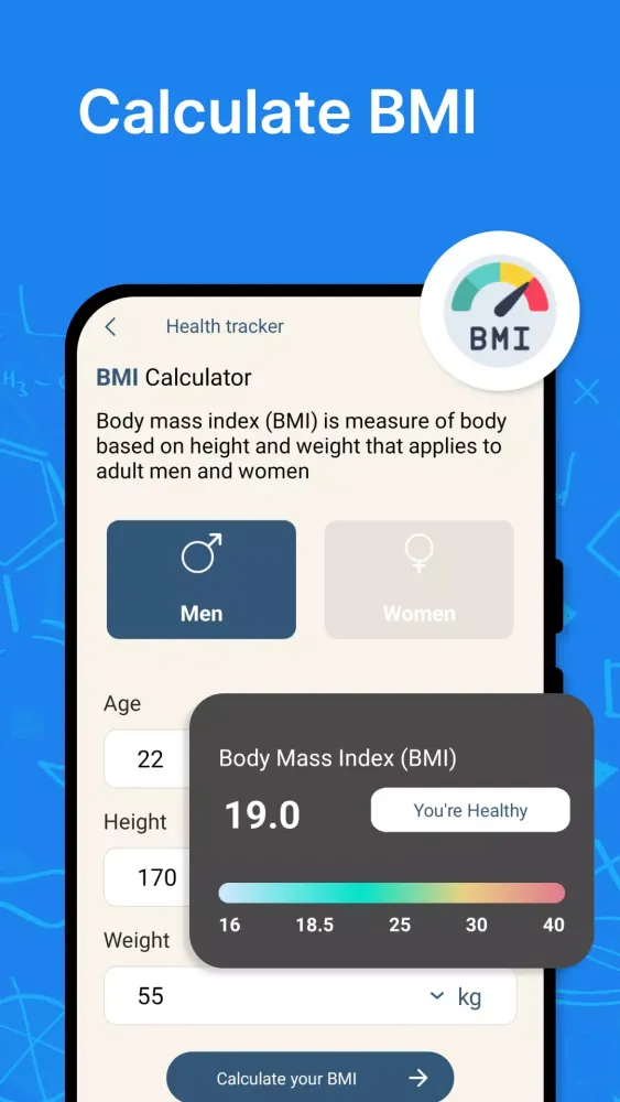 - Health Tracker: Monitor your Body Mass Index (BMI) regularly to maintain a healthy lifestyle.