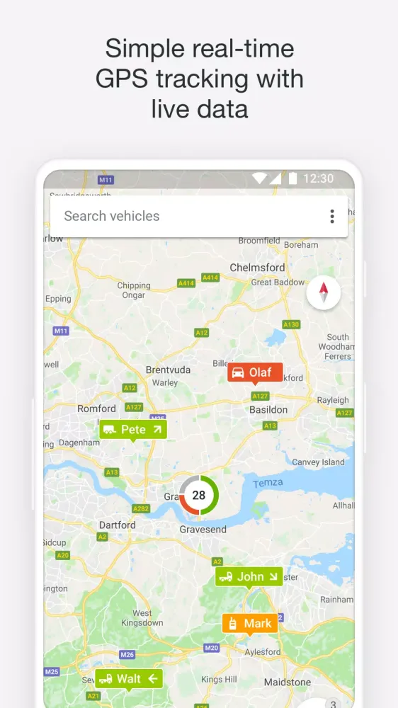 The Map View feature provides an aerial perspective of your entire fleet, allowing you to quickly zoom into specific vehicles. You can choose from various map types, including Satellite, Terrain, and Hybrid views. Additionally, you can overlay traffic and territory data for better insights. Custom vehicle grouping makes it easier to manage multiple fleets and view your current location relative to your fleet.