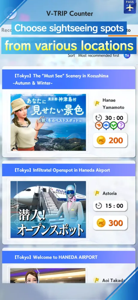 ANA GranWhale is a virtual travel platform designed to provide users with greater freedom and comfort. As a World Traveler (avatar), you can explore stunning travel destinations and shopping experiences recommended by ANA right from your smartphone. Each destination features historic landmarks and breathtaking panoramic views, making your virtual journey both informative and visually captivating. Unique V guides accompany you throughout your V-TRIP, sharing fascinating stories and trivia about each location to enhance your experience.