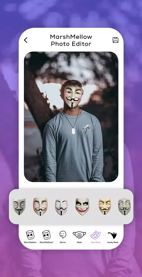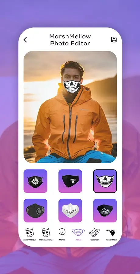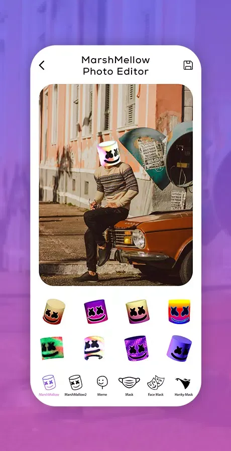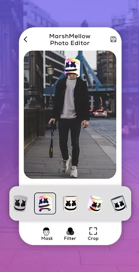 This free photo editing app is designed specifically for Marshmello enthusiasts who wish to incorporate the iconic Marshmello mask into their photos. With this app, you can browse through a variety of Marshmello face masks and choose the one that best represents your style. Whether you're attending a concert, hanging out with friends, or just taking a casual snap, you can easily apply a Marshmello mask to your photo to show your unwavering support.