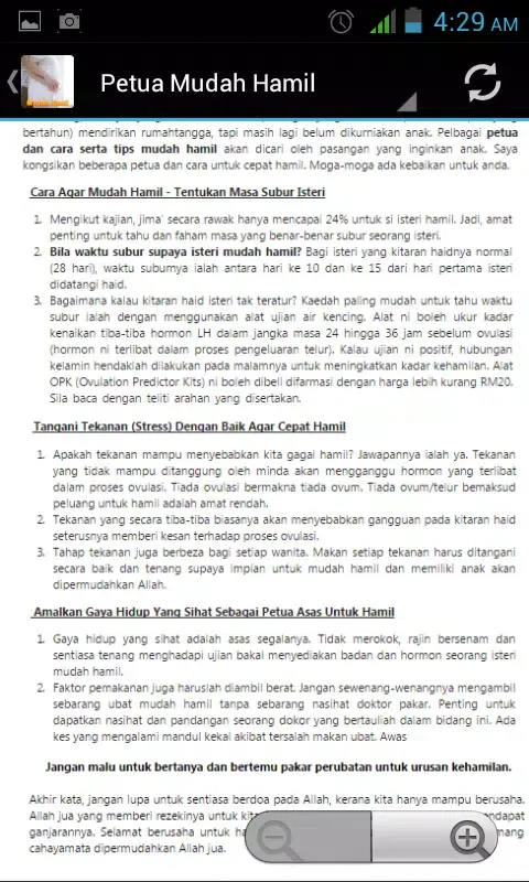 Guidance and Support: Mudah Hamil not only offers factual information but also emotional and spiritual guidance, making it a holistic resource for couples preparing for parenthood. The app encourages a balanced approach, combining modern knowledge with traditional wisdom.