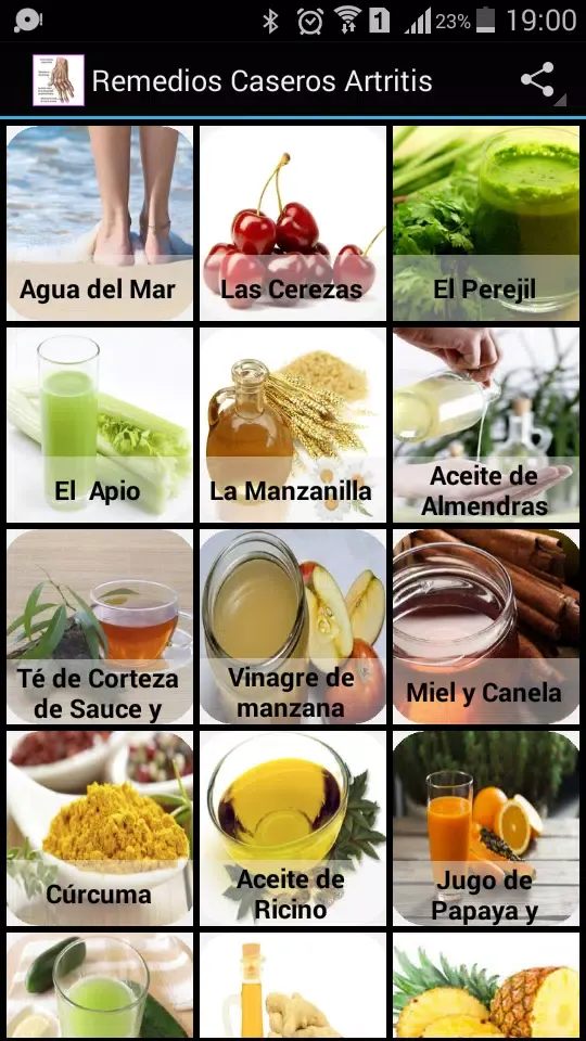 This application, "Remedios Caseros Artritis," is designed to provide you with valuable information about items commonly found in your home that can be used to effectively manage arthritis symptoms. Our goal is to help you utilize these natural resources in a beneficial manner, offering practical solutions that can improve your quality of life. From simple dietary changes to the use of herbs and other household items, our app aims to empower you with knowledge and tools for self-care. Whether you're looking for quick fixes or long-term strategies, we have you covered.