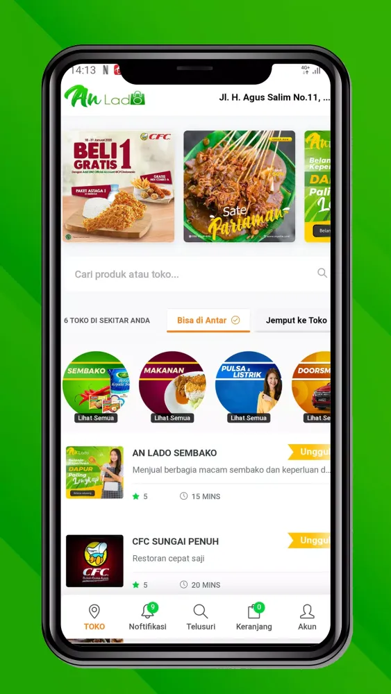 An Lado Sungai Penuh menjadi pilihan utama untuk belanja online di Sungai Penuh. Nikmati perjalanan belanja yang mudah dan menyenangkan bersama kami. Dari menjelajahi penawaran menarik dengan harga yang tak terkalahkan hingga menikmati pengiriman gratis seluruh kota, An Lado memberikan pengalaman yang tak terbandingkan. Belanja kapan saja, di mana saja, langsung dari perangkat mobile Anda.
