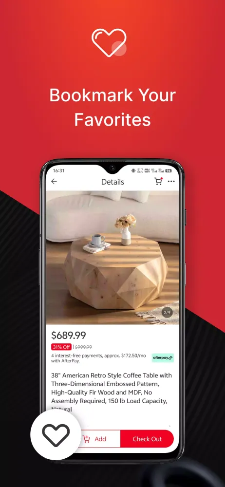 The Augmented Reality (AR) function in the Aosom app revolutionizes your home furnishing decisions. By visualizing furniture and home decor in your space before purchasing, you can ensure the perfect fit and style with minimal effort.
