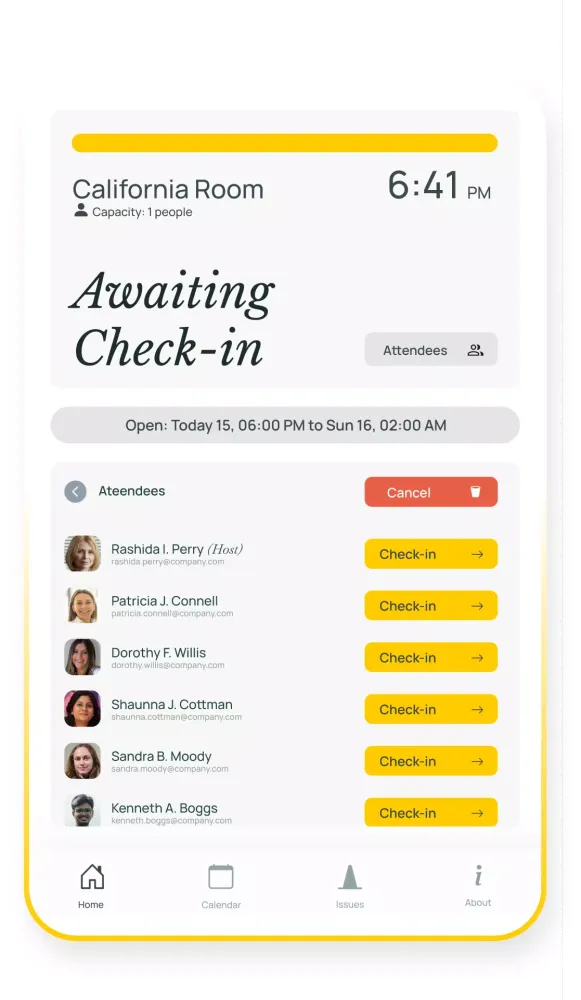 Check-in via an Apple boarding pass ensures that the person scheduled for the meeting is the one using the space. This verification process is crucial for maintaining security and organization.