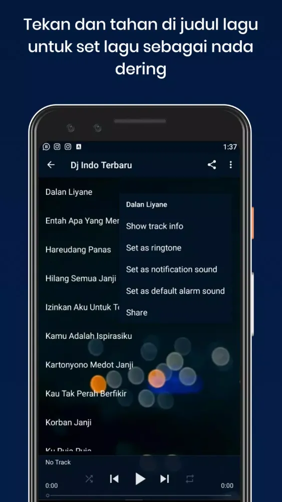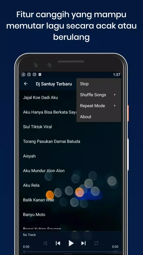 The app features an extensive playlist of viral and popular DJ songs that have taken social media by storm. Each track is carefully curated to provide listeners with a rich auditory experience. The playlist includes timeless classics as well as contemporary hits, ensuring there's always something new to groove to. Some of the standout tracks include "Kopi Dangdut," "Ampun Bang Jago," "Blue Bird," and "Someone You Loved." Additionally, there are romantic ballads like "Rela Demi Cinta" and "Sakit Pinggang," making it perfect for both parties and quiet moments.