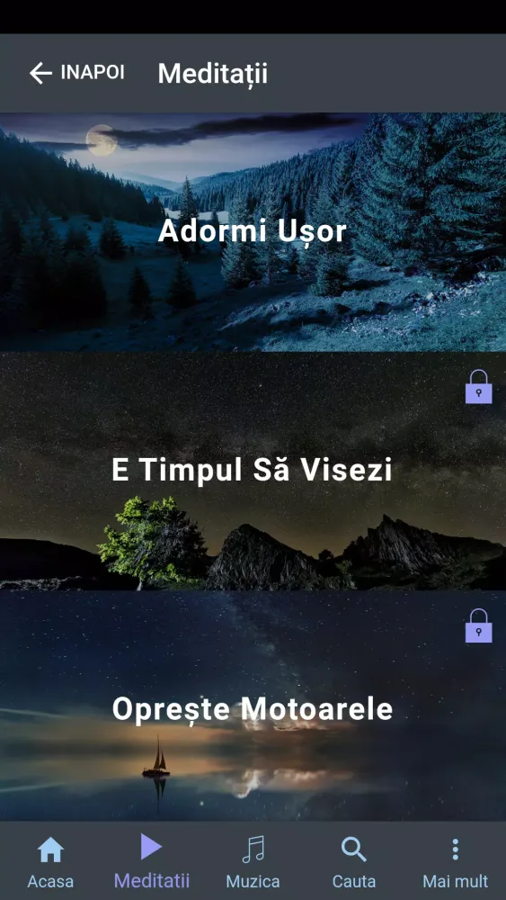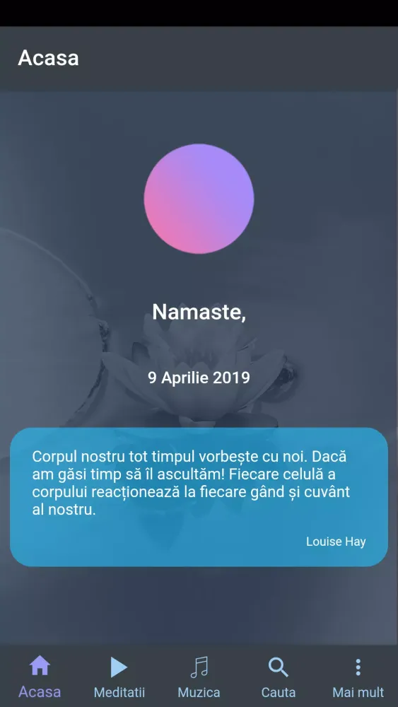 Casa Meditatiilor is more than just an application—it’s your personal sanctuary for inner peace and mindful living. Designed to guide you on a transformative journey of meditation, conscious breathing, and self-awareness, this app offers a comprehensive approach to enhancing your mental well-being. Whether you're looking to reduce daily stress, improve sleep quality, or simply live with greater mindfulness, Casa Meditatiilor provides the tools and resources you need to make positive changes in your life.