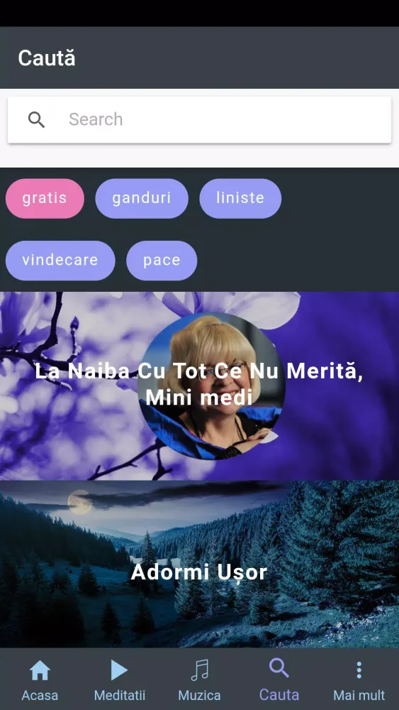 At its core, Casa Meditatiilor focuses on helping users achieve balance and tranquility through guided meditations. These sessions are crafted to cater to various aspects of life, from managing anxiety and improving focus to fostering deeper connections with yourself and others. By dedicating just five minutes each day to these practices, you can begin to notice significant improvements in how you handle stress, interact with those around you, and perceive the world. The app's diverse range of meditative experiences ensures that there's something for everyone, no matter where they are on their mindfulness journey.