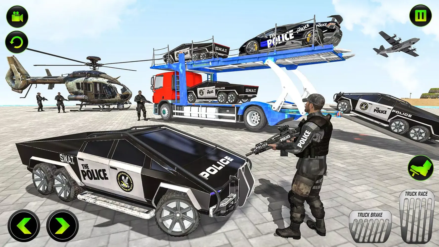 As you progress, the game introduces more complex objectives. You’ll have the opportunity to pilot a Police Cargo Helicopter or a Police Plane, transporting heavy-duty vehicles across vast distances. Flying these aircraft requires mastering intuitive controls through buttons and joysticks, adding another layer of excitement to the gameplay. Meanwhile, you’ll encounter thrilling sea missions involving Police Cargo ships, requiring you to carefully maneuver through challenging waters. Each mission is meticulously designed to test your reflexes and decision-making skills, whether you're racing against time to intercept fleeing criminals or carefully docking vehicles at designated locations.