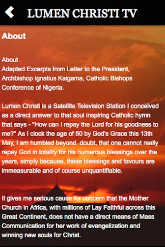 Lumen Christi is a Catholic Television station based in Africa, dedicated to spreading the message of faith and hope through the lens of Catholicism. Conceived as a direct response to the soul-stirring lyrics of the Catholic hymn, "How can I repay the Lord for his goodness to me?", this television station aims to honor divine providence in a way that resonates with the faithful.