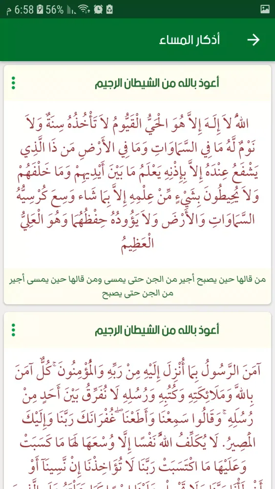One of the core components of this application is the dedicated section for daily adhkaar (supplications). It includes a vast array of adhkaar that are crucial for every Muslim to incorporate into their daily routine. Additionally, there is a section dedicated to Ruqyah Sharīʿah, which includes verses from the Quran and authentic hadiths, ensuring that users have access to the most reliable sources for spiritual protection.
