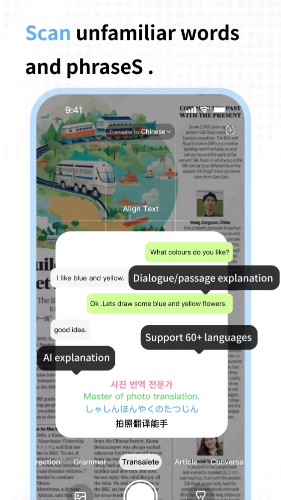 Our app integrates translation and read-along functionalities, which not only expand your vocabulary but also help you develop authentic speaking skills. Focusing on these essential aspects allows you to concentrate on improving your speaking abilities without worrying about language barriers or misunderstandings.