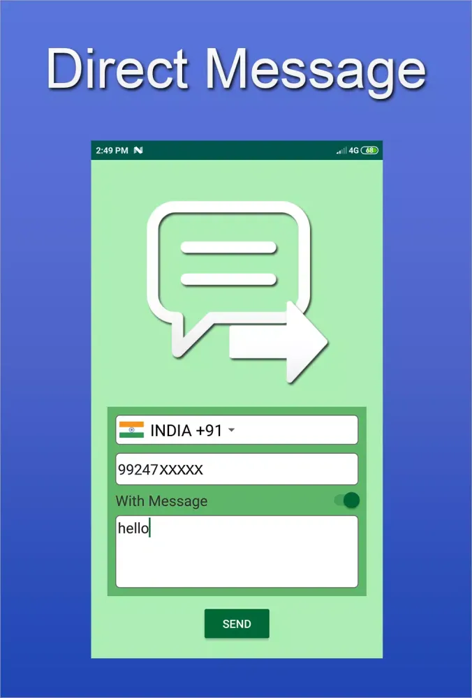 Direct Message is a powerful tool designed to enable users to send messages directly to any WhatsApp number without saving it in their contact list. This application streamlines communication by allowing you to chat directly with anyone without the need to save their phone numbers in your WhatsApp contacts.