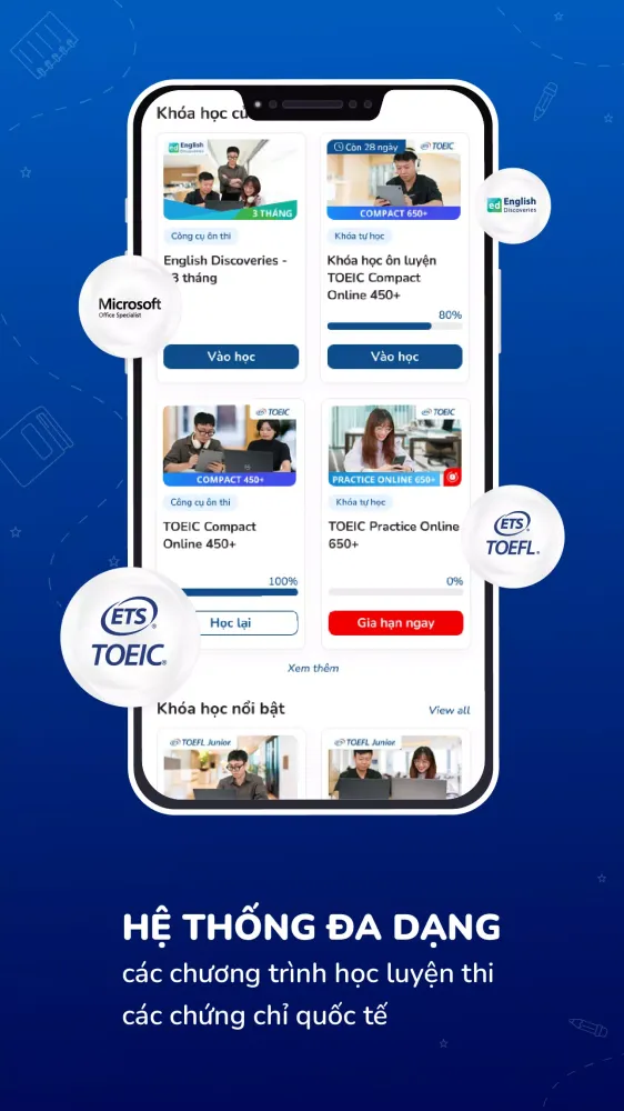 In addition to TOEIC preparation, the IIG E-learning application also offers various international certification exam preparation programs, including TOEFL, IC3, MOS, and more. These programs are designed to help students achieve their desired scores efficiently.