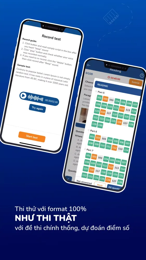 The application ensures that learners can experience practice exams with an interface and format that closely mirrors the real test. Featuring official practice tests from ETS (Educational Testing Service) and IIG Vietnam, the content is updated regularly to stay current with the latest test formats. This allows students to become familiar with the operation, exam room pressure, time management, and receive almost accurate predictions of their test scores.