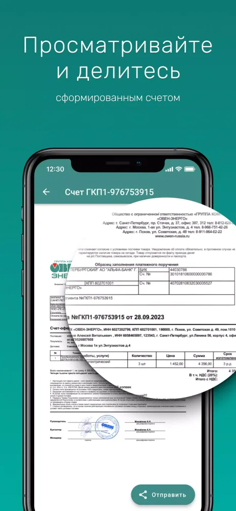 The "Овен" application is a powerful tool designed to streamline your billing process by offering an all-in-one solution for creating, sending, and tracking payments. Whether you're managing invoices for your business or handling personal finances, this app simplifies every step of the workflow, ensuring efficiency and accuracy in managing financial transactions.