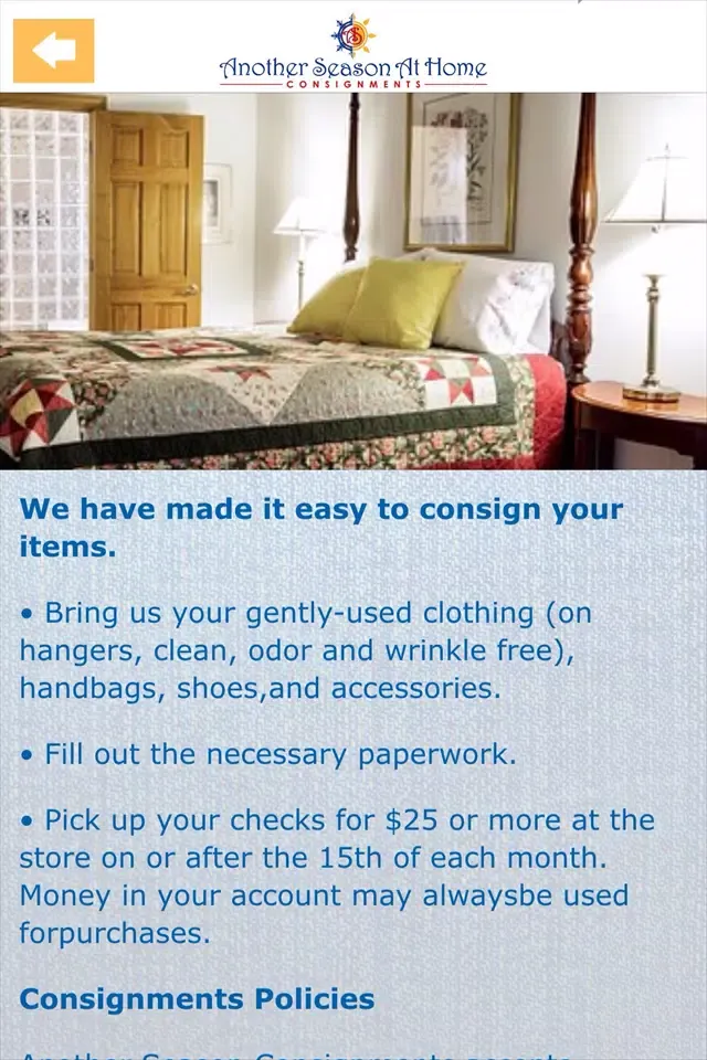 What sets us apart is our commitment to providing a seamless shopping experience. Through our user-friendly mobile app and website, Another Season Consignments opens its doors to shoppers worldwide. No matter where you are, you can browse our extensive catalog of incredible finds at your convenience. Our platform allows you to explore new arrivals, filter items by category, and even save favorites for future purchases. This digital accessibility ensures that you never miss out on the latest treasures we have in store, whether you're browsing during lunch breaks or late-night shopping sprees.