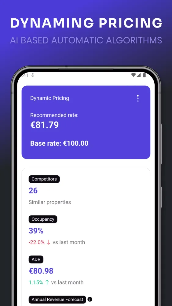 - Market Insights & Performance Tracking: Gain valuable insights into the performance of your properties with detailed analytics. Monitor key metrics such as Average Daily Rate (ADR), revenue forecasts, and occupancy rates to make informed decisions.