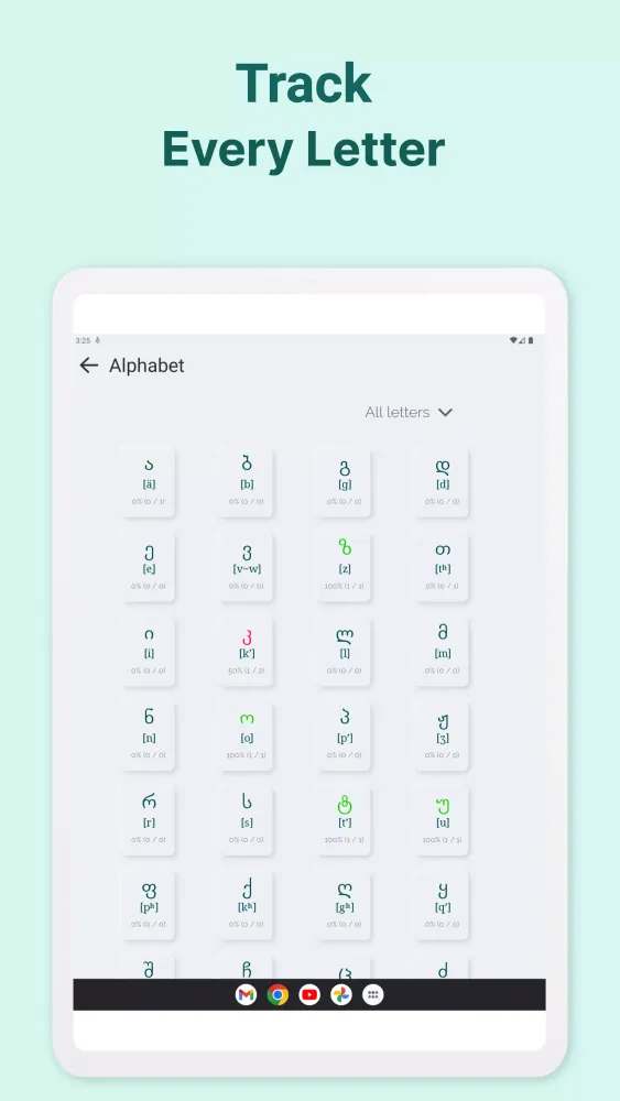 So why wait? Start your journey into the world of the Georgian language today with Kartuli - Georgian Alphabet. Download the app now and discover a fun, efficient, and rewarding way to learn. Enjoy the process of mastering a new skill, and let Kartuli guide you toward fluency and cultural understanding!