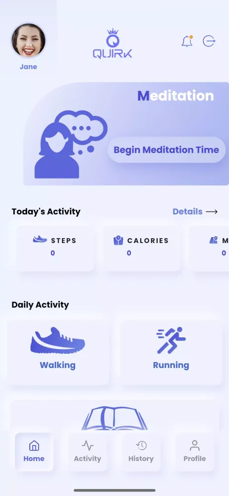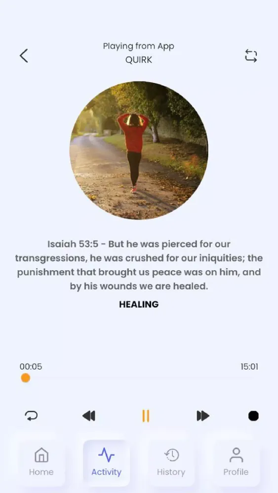 QUIRK offers both guided and non-guided meditation options. During guided meditation, you can choose to walk or run while listening to soothing audio that leads you through relevant scripture verses. Alternatively, you can opt for non-guided meditation with calming music to create a serene environment for your personal reflection.