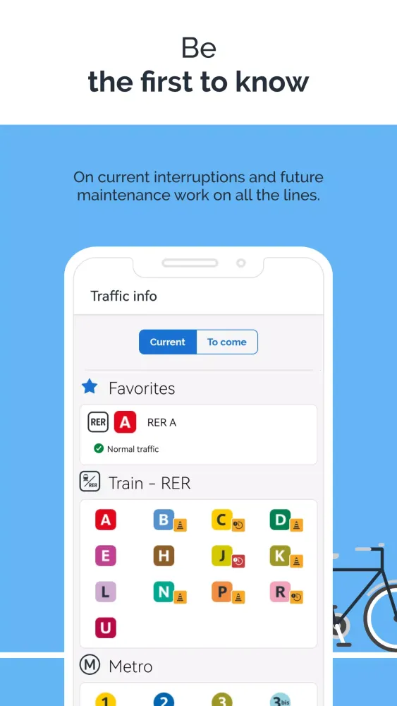 Stay informed about any disruptions or delays with real-time traffic updates through the Twitter feeds of your lines. Receive alerts for disruptions on your favorite lines and routes, and stay updated on the status of station elevators. You can also check and report the number of passengers on your route to better plan your journey.